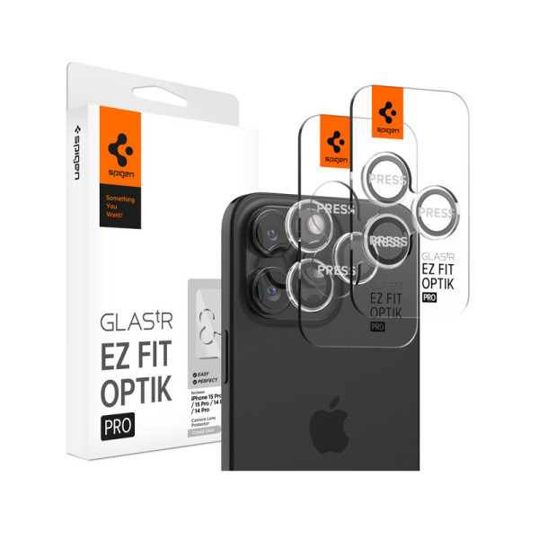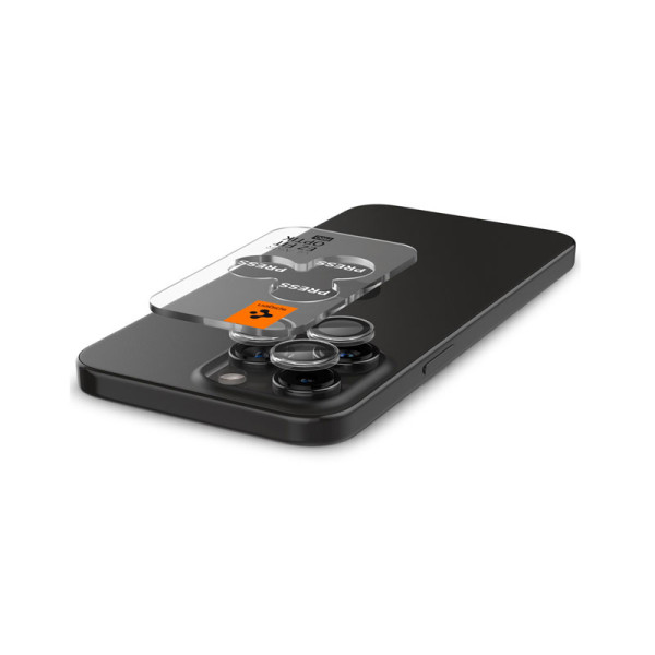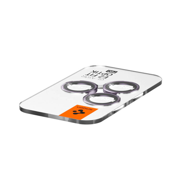 Spigen's Glas tR EZ Fit Optik Pro Lens Protector safeguards your iPhone's delicate camera lens from scratches, nicks, and everyday wear and tear. This innovative lens protector seamlessly blends 9H tempered glass with an oleophobic coating, keeping your device's camera lens pristine, protected, and fingerprint-free.