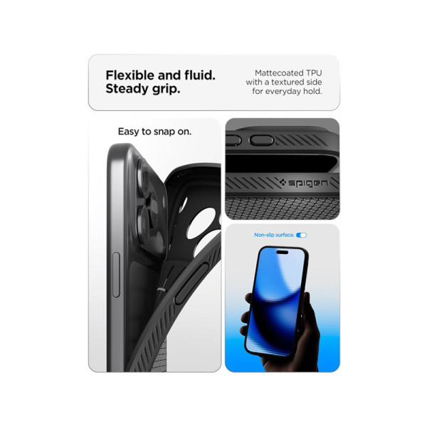 The Liquid Air Case for iPhone 17 Pro combines sleek style with everyday durability. Its slim, lightweight design offers a secure grip and resists fingerprints, while Spigen’s Air Cushion Technology ensures military-grade protection against drops and impacts. With precise cutouts and wireless charging compatibility, it delivers reliable defense and modern elegance for your iPhone 17 Pro.