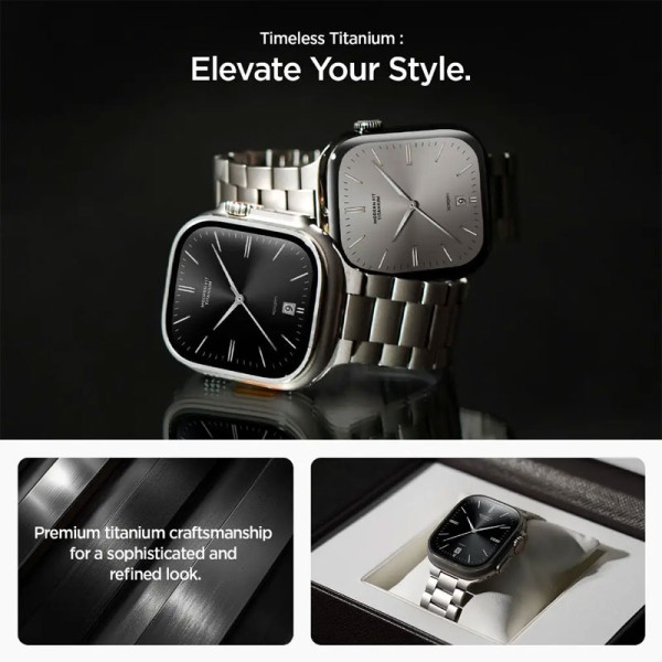 Crafted from high-quality titanium, the Modern Fit Titanium Band for Apple Watch Ultra 49mm offers exceptional durability without unnecessary weight. Titanium is known for its strength, corrosion resistance, and premium feel, making it ideal for long-term daily use. This band is precisely engineered to match the Apple Watch Ultra 49mm case, ensuring a seamless connection with no gaps or looseness. The precise connectors slide smoothly into place and lock securely, giving you confidence during everyday wear or active use. Despite its strong metal construction, the band feels comfortable on the wrist. The smooth finish reduces irritation, while the balanced weight ensures it does not feel heavy during extended use. It is suitable for work, casual wear, and outdoor activities alike. The Modern Fit Titanium Band for Apple Watch Ultra 49mm features a reliable clasp system that keeps your watch firmly in place. This secure closure helps prevent accidental slips, making it a dependable choice for active users. With its clean lines and refined titanium finish, the Modern Fit Titanium Band for Apple Watch Ultra 49mm enhances the overall look of your smartwatch. It pairs perfectly with the Ultra’s rugged design while adding a touch of premium sophistication. This makes it an excellent choice for users who want one band that transitions effortlessly from outdoor adventures to formal settings. The Modern Fit Titanium Band for Apple Watch Ultra 49mm is made from durable titanium material and is compatible exclusively with Apple Watch Ultra 49mm models. It features precision-fit connectors, a secure metal clasp, and an adjustable design to fit a wide range of wrist sizes comfortably. The band is built for long-term durability, daily wear, and resistance to wear and tear.