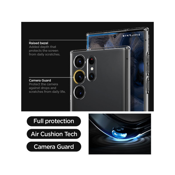 Spigen's Liquid Crystal Case is the perfect way to protect your Galaxy S23 Ultra while still showing off its stunning design. This ultra-thin and lightweight case provides transparent clarity, so you can flaunt the sleek aesthetics of your phone without sacrificing protection.