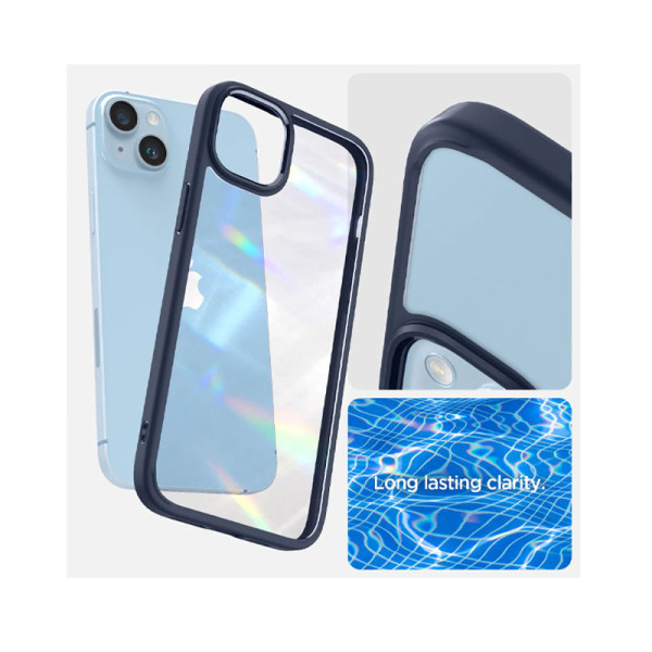 Spigen's Ultra Hybrid Case for iPhone 14 is the perfect combination of crystal clarity and unwavering protection. The case features a transparent PC back, a shock-absorbing TPU frame, and a durable blue resin infusion, which protects your phone from everyday bumps and drops while still showing off its natural beauty. It also supports wireless charging, so you can keep your phone charged without having to remove the case.
